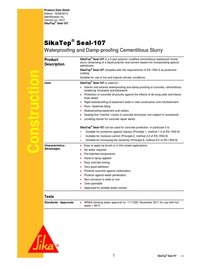 Sikatop Seal 107 2011 10 1 Concrete Mortar Masonry