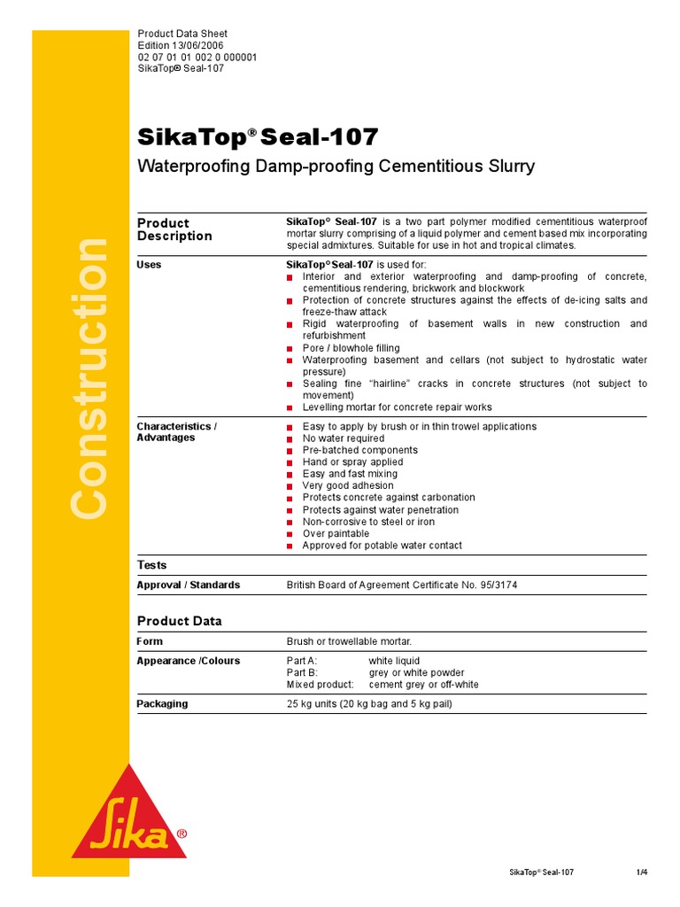Sikatop Seal 107 Pdf Concrete Mortar Masonry